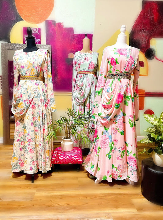 Floral medley Saree gown - Pink
