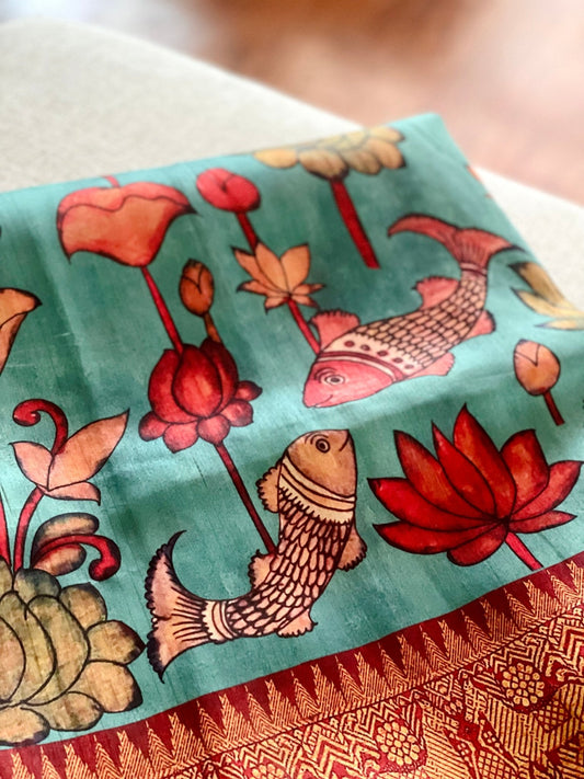 Kalamkari drapes Semi Tussar silk Saree