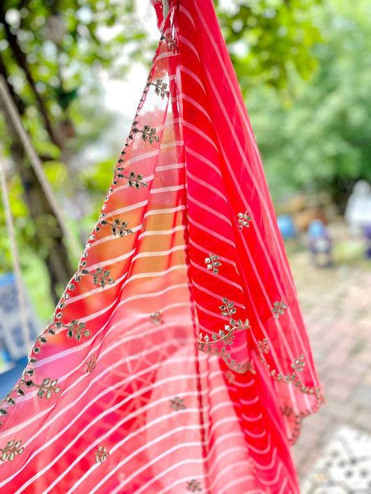 Multi shade Leheriya dupatta - Red