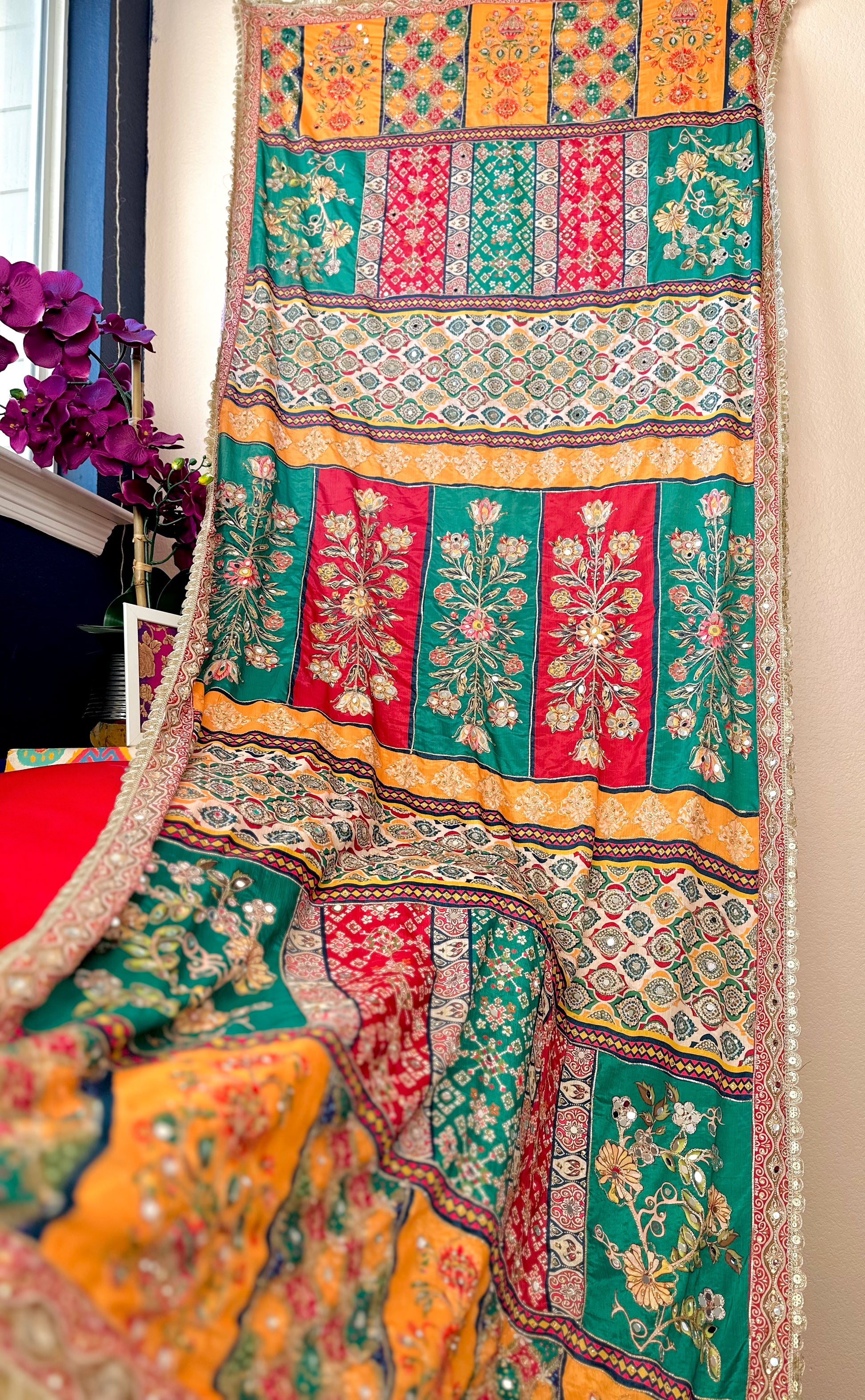 These versatile dupattas can be paired with lehengas, long gowns, or salwars to instantly elevate any look. They look stunning as wall art/home decor pieces too