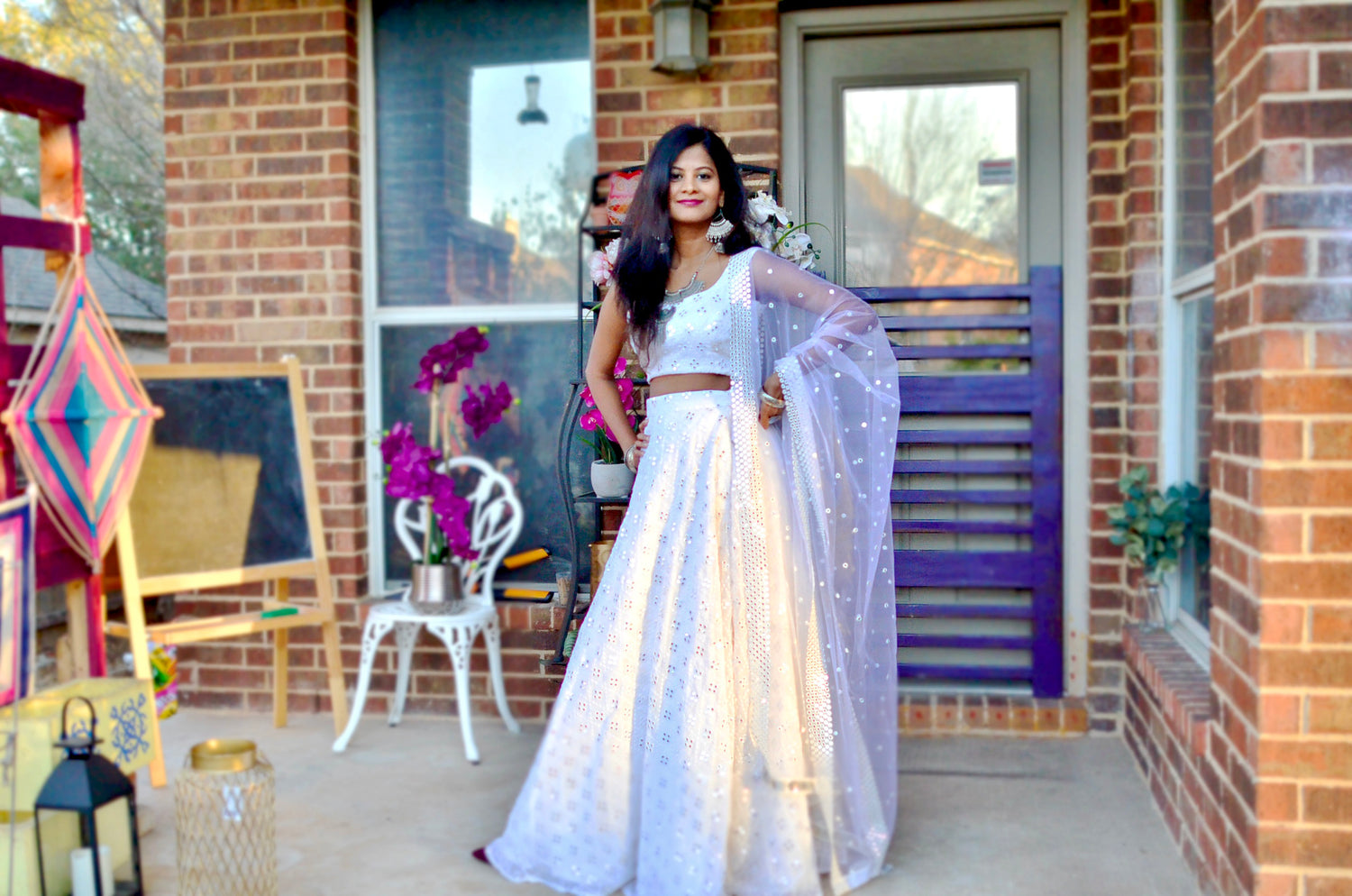 This dazzling white mirror thread work lehenga is perfect for summer weddings, events, or the upcoming festive season. The fuss-free and easy-to-carry design makes it perfect for teens too.