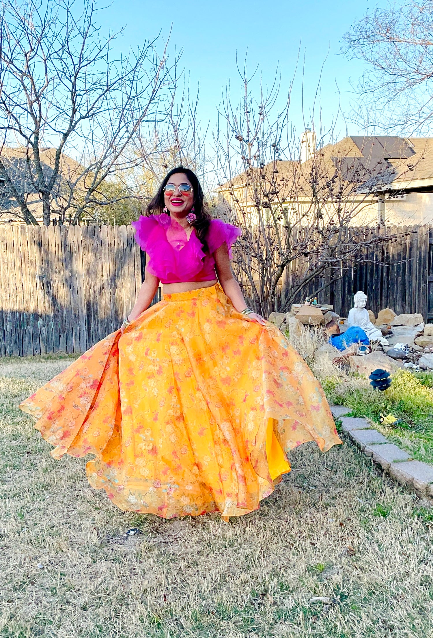 Hot pink organza ruffles top